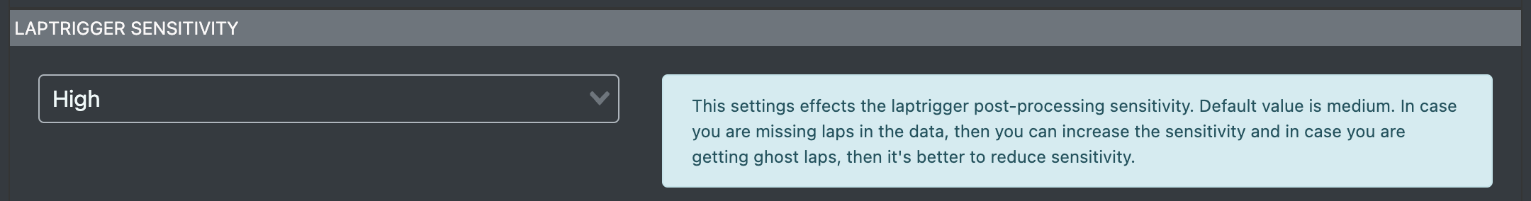 Sets lap and split hit sensitivity when processing logged data. Should be adjusted according to processed results.