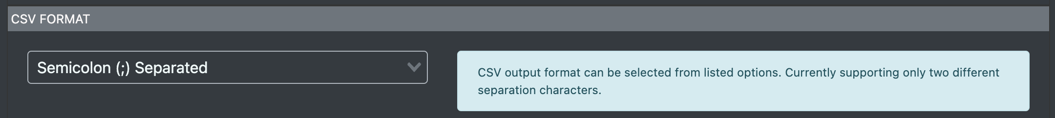 Logged raw data files can be exported in CSV format. This setting changes the separator type. Can be switched between comma [,] and colon [;].